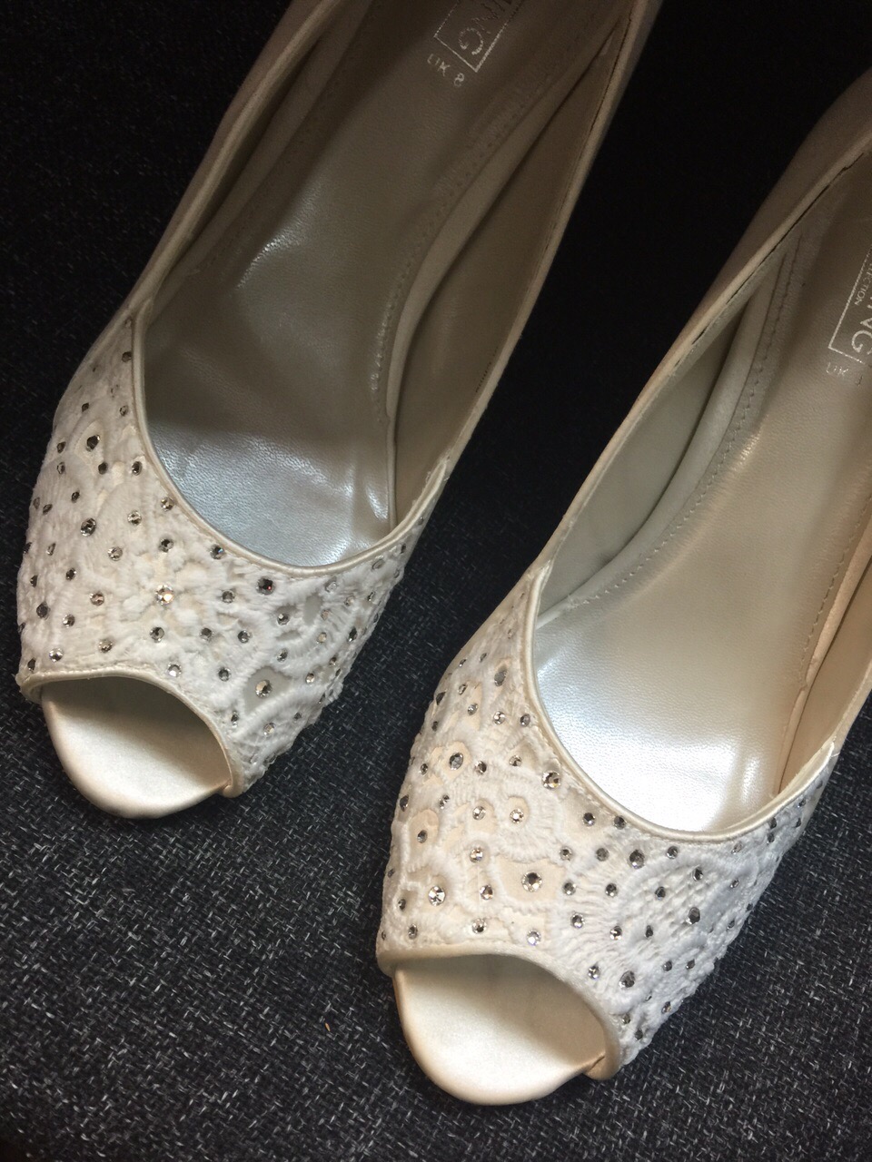 Swarovski diamanté crystals were also added to her bridal shoes in the Kosibah studio.