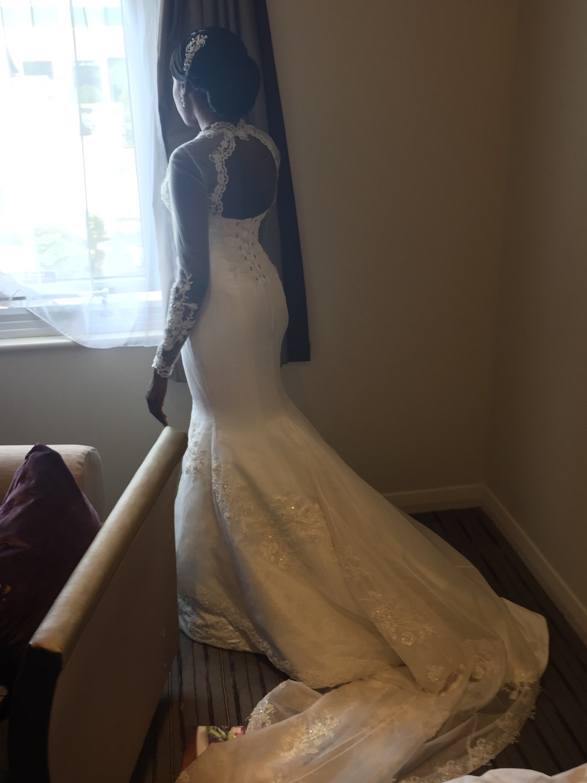 As usual with all my clients I wanted to know from Ruby what elements of a couture bridal gown would tick all her boxes. She said she’d like a really long train, a fitted fishtail gown with lace detail and an open back.