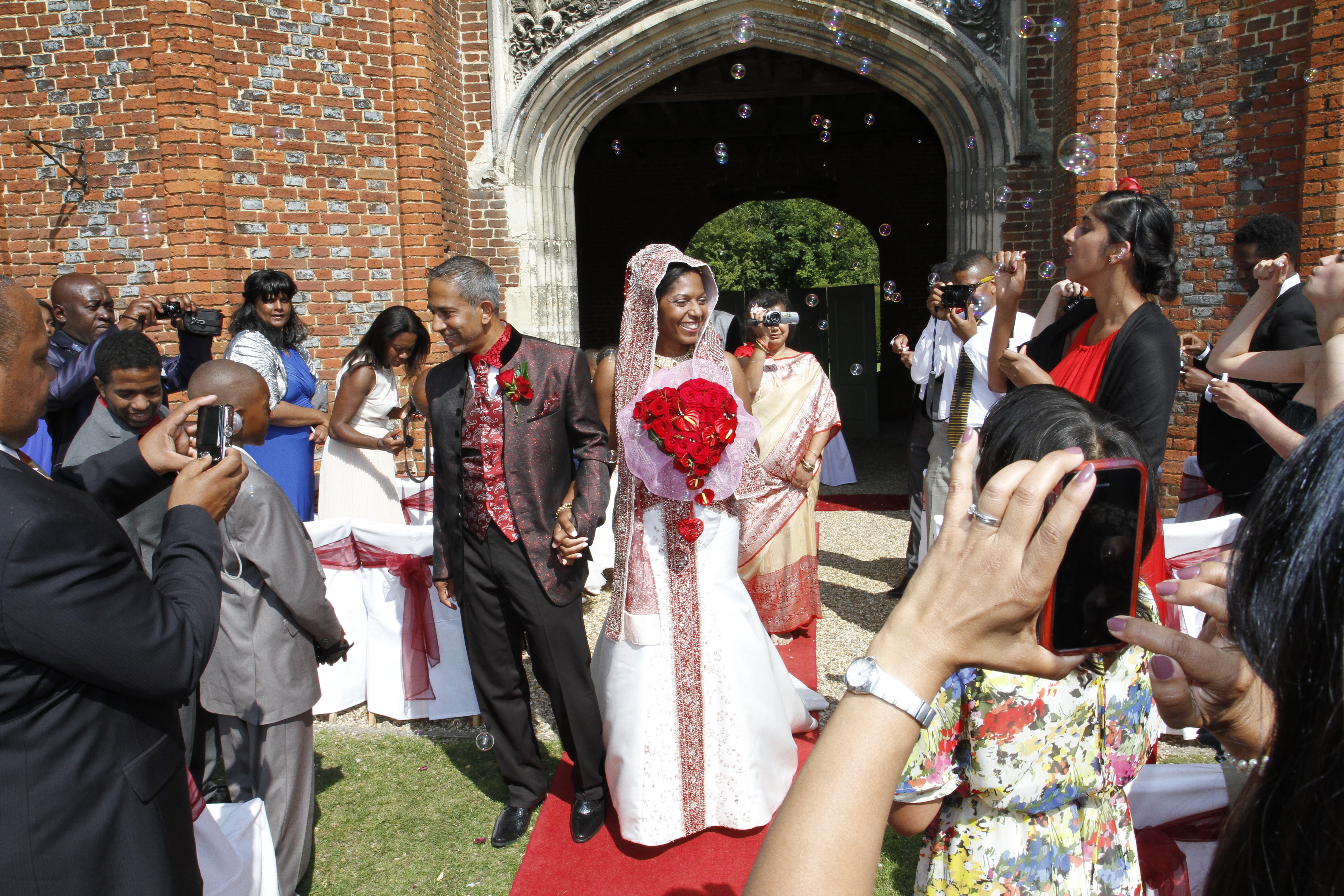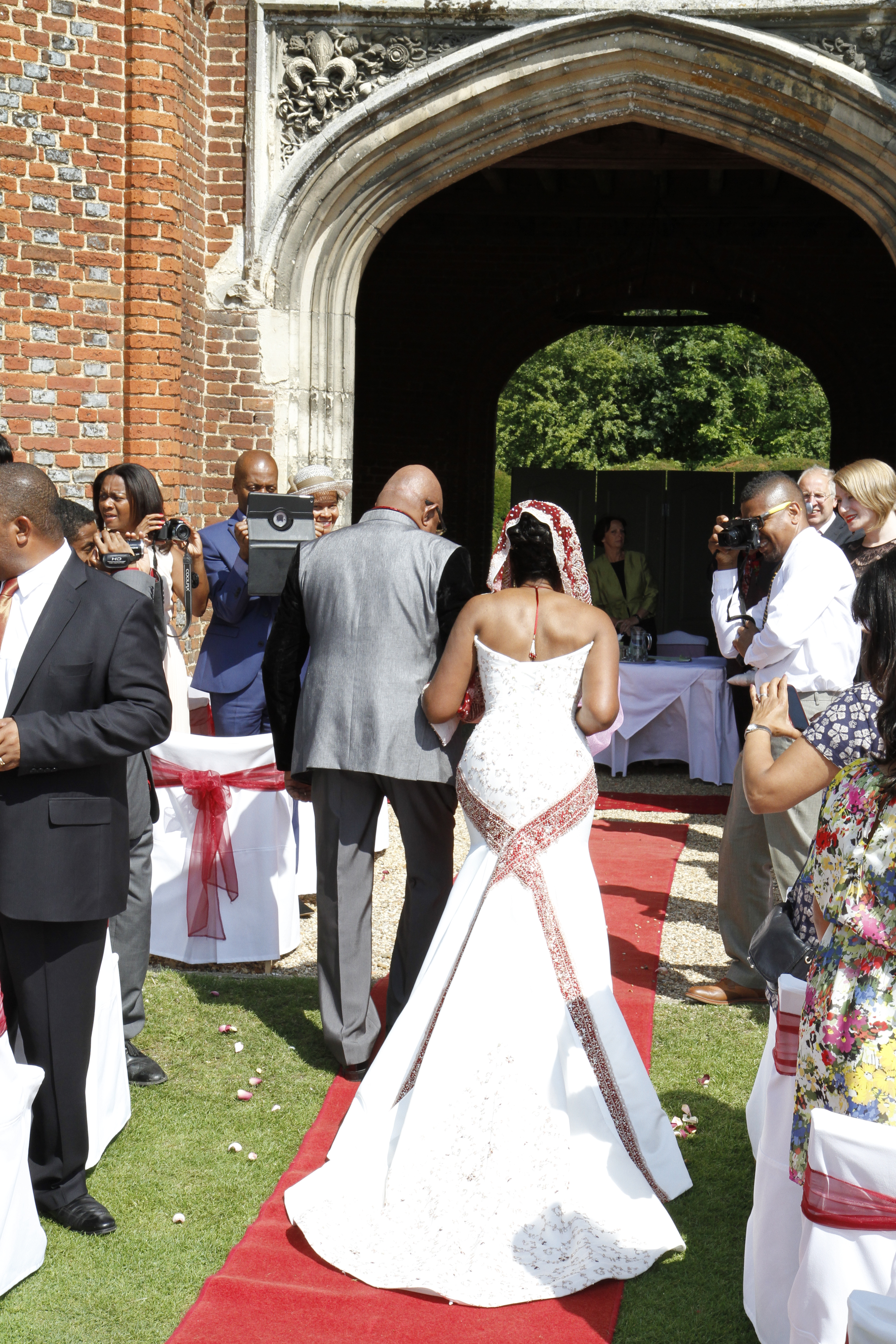 The wedding took place in the grounds of the magnificent Tudor mansion Leez Priory with the wedding breakfast in a hall within the mansion.