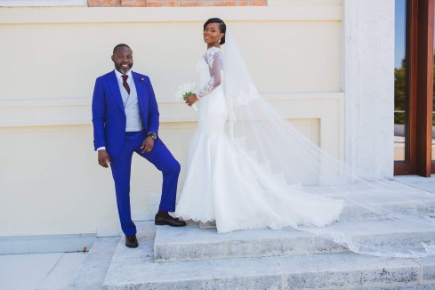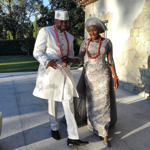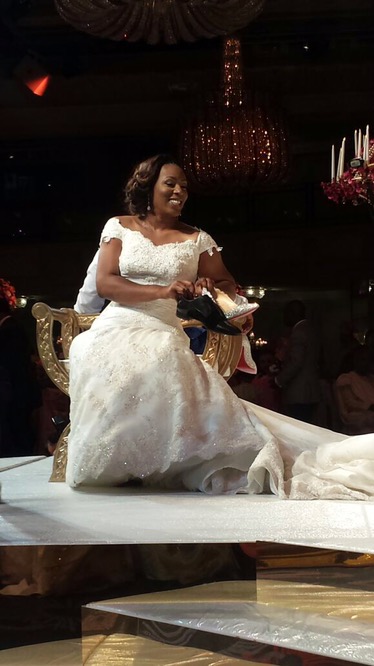 Funmilayo wore a couture fishtail gown. It had a removable chemise with 3/4 length sleeves which she removed for the informal part of the wedding reception.