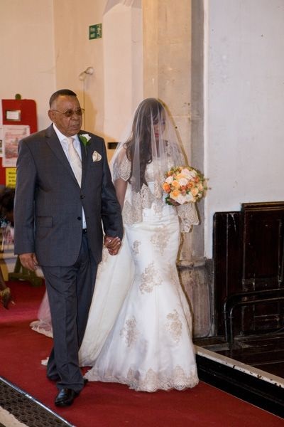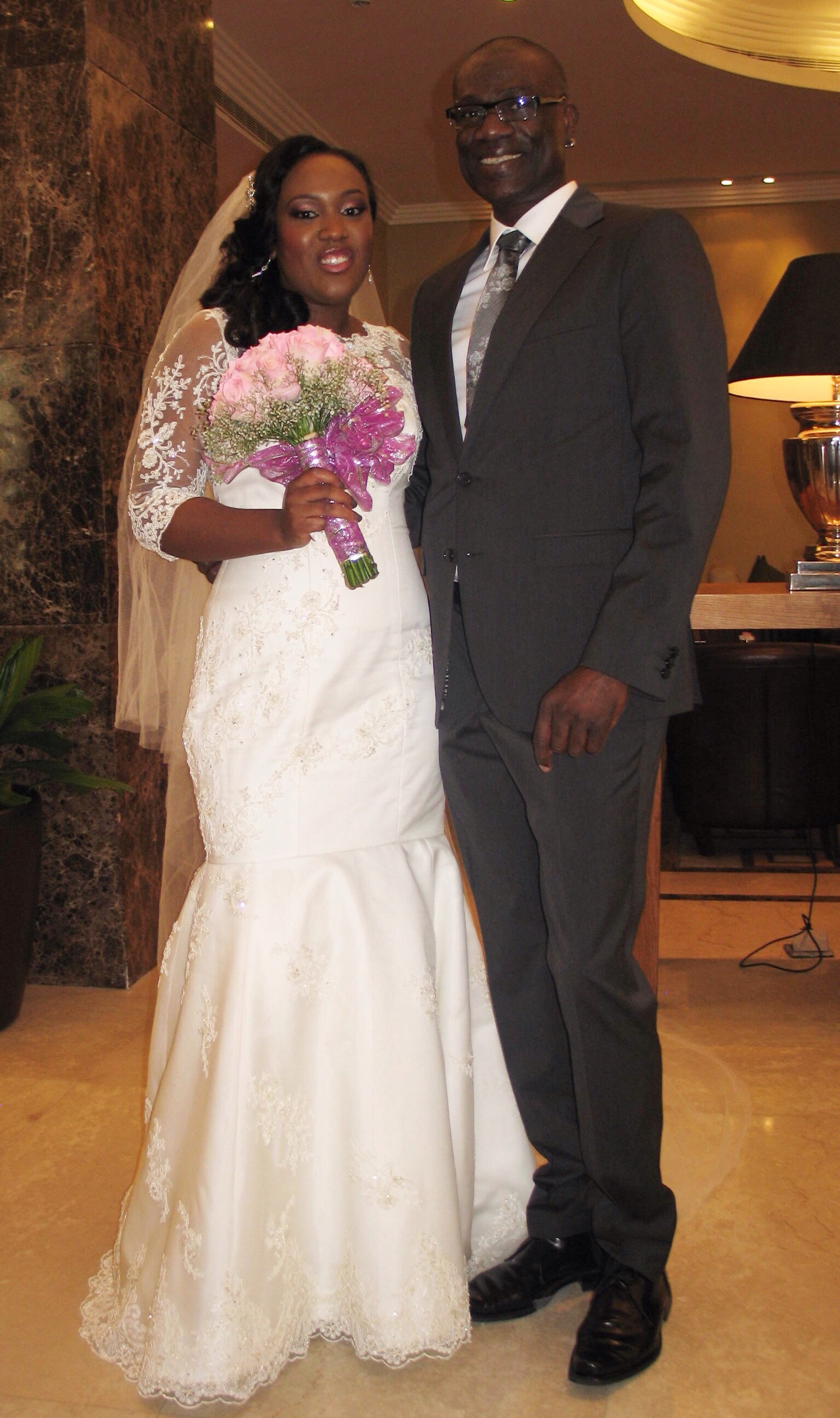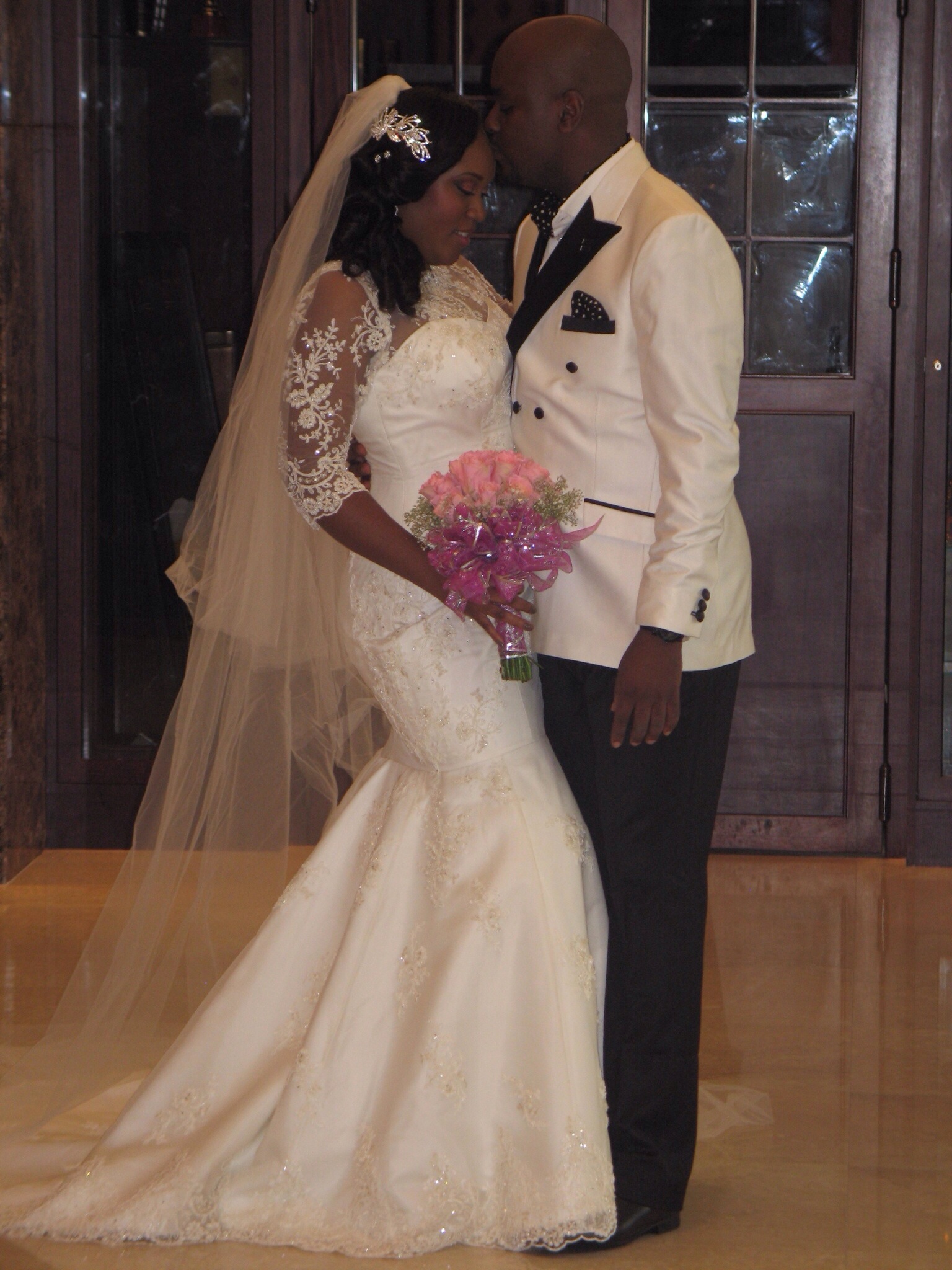 Funmilayo wore a couture fishtail gown. It had a removable chemise with 3/4 length sleeves which she removed for the informal part of the wedding reception.