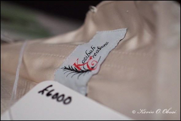 Funmilayo wore a couture fishtail gown. It had a removable chemise with 3/4 length sleeves which she removed for the informal part of the wedding reception.